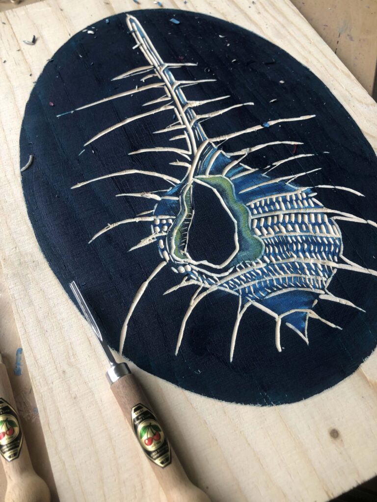 21.1. Öljyliidut ja kaiverrus: Yhdessä kaiverrus ja öljyliidut tuo vanerilevylle kolmiulotteisuutta, syvyyttä ja eloa. Korostaen muotoja, värejä ja tekstuureja moniulotteisiksi kokonaisuudeksi. Vanerilevy on miellyttävä työstettävä ja öljyliitujen pehmeys mahdollistaa pehmeiden siirtymien luomisen.